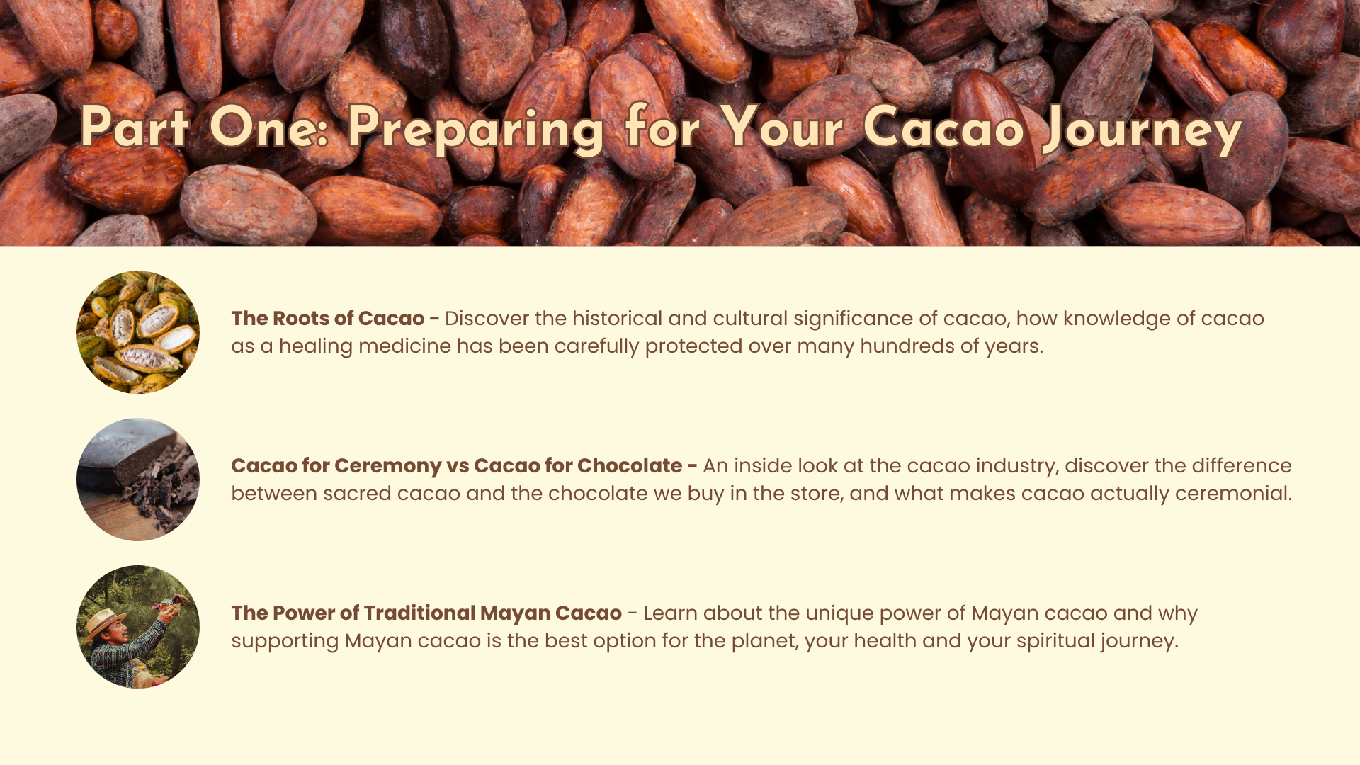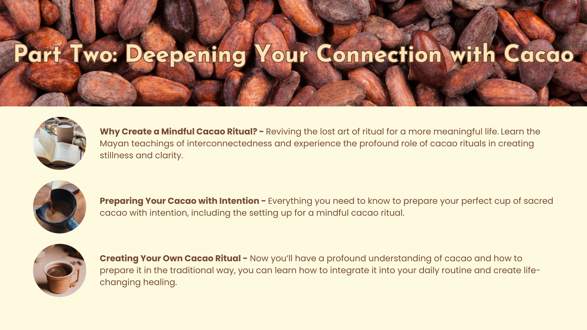 Our immersive online course gets right to the heart of traditional cacao practices for an authentic approach to well-being and spirituality.